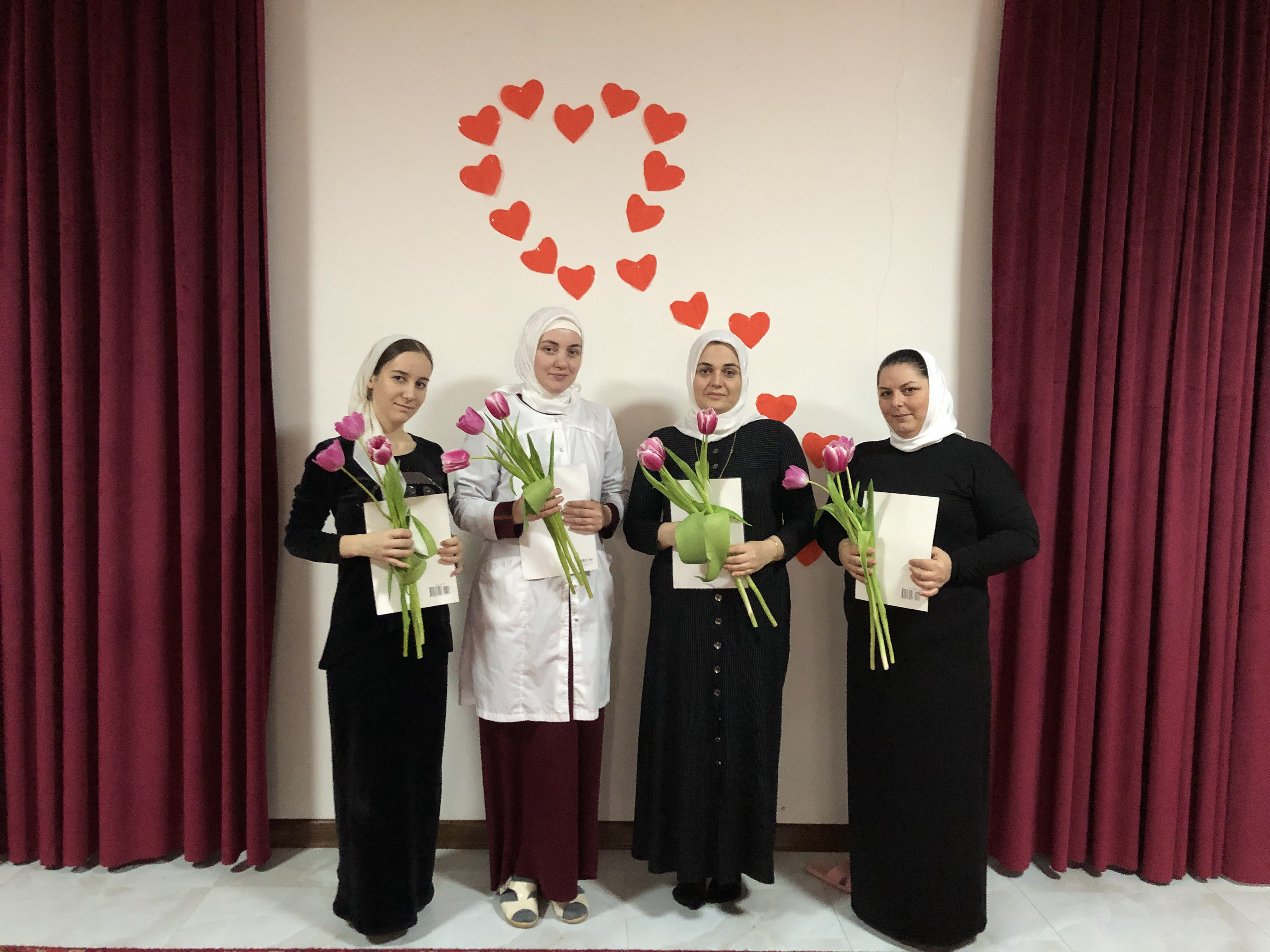 Администрация и председатель профкома ДОУ награждает Абдурзакову Мадину, Азамову Медну, Берсаеву Луизу и Абаеву Мадину за добросовестный труд и в связи с Международным Женским Днем 8 Марта!